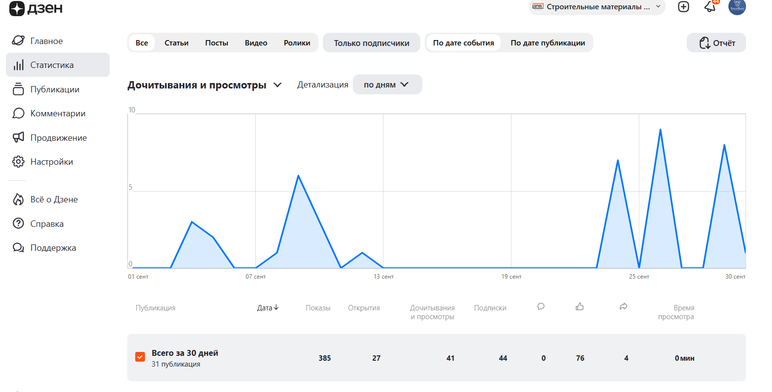 — Подписчики: +10 (рост на 43%)